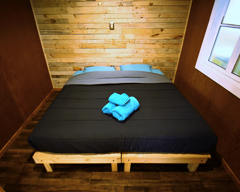 Our shared bedrooms have 8 bunk beds, each one independant from the others, anchored to the wall, equipped with a power outlet and light for each guest. The rooms are heated and have the bathrom on a second floor, where you will also find lockers asigned to each bed. Breakfast is included throughout your stay.